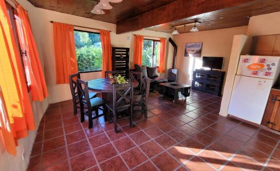 Cabaña de 3 ambientes en planta baja, para 5 personas. 2 dormitorios.