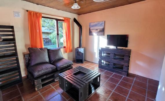 Cabaña de 3 ambientes en planta baja, para 5 personas. 2 dormitorios.